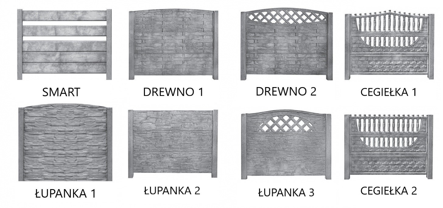 Oferujemy różne wzory płyt, takie jak cegła, łupanka czy drewno, dzięki czemu ogrodzenie może harmonijnie komponować się z otoczeniem.